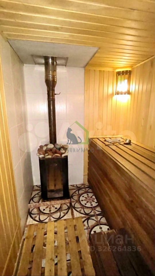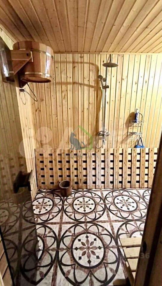 +На участке построена баня из кирпича, в внутренней качественной отделкой из дерева. В ней комната отдыха, душевая, сауна, помещение водоснабжения и газовый 2-х контурный котел. Рядом небольшой сарай для хранения инвентаря.
