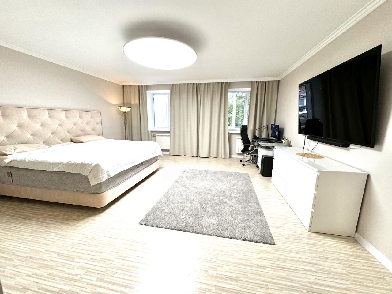 Продается просторная и светлая 3-комнатная квартира в кирпичном доме у леса.Общая площадь квартиры составляет 139,4 кв. м, жилая площадь — 90 кв. м, а кухня — 30 кв. м, что идеально подойдет для большой семьи или тех, кто любит простор. Квартира находится на втором этаже 10-этажного дома. Высота потолков — 2,7 метра, что добавляет ощущения простора и комфорта.