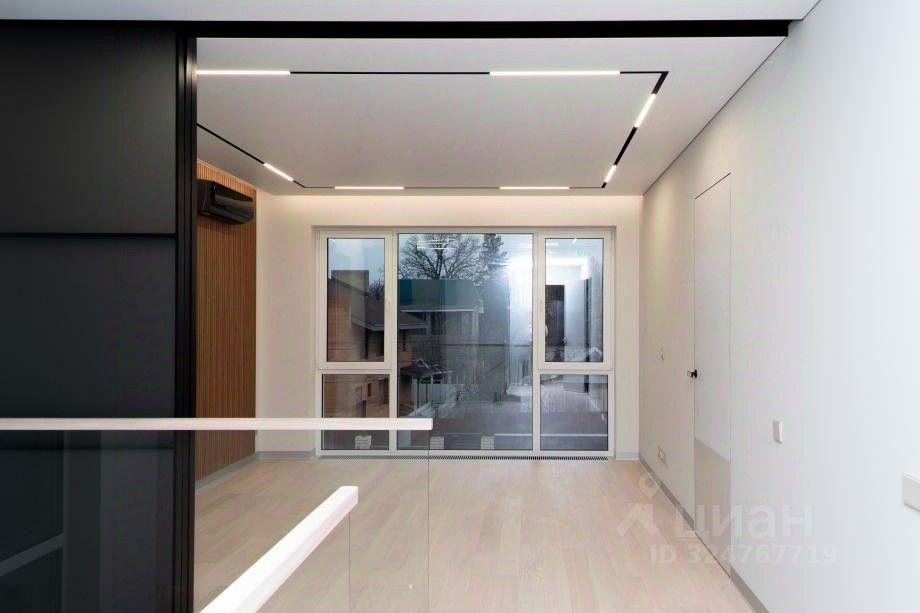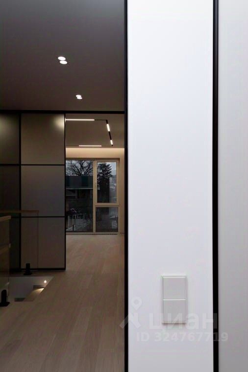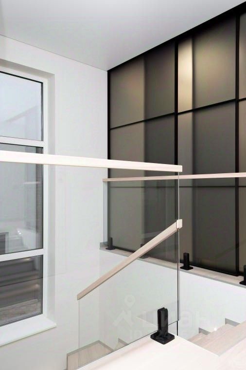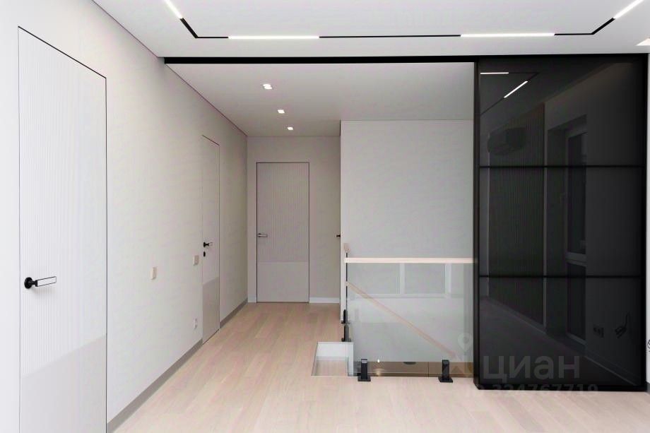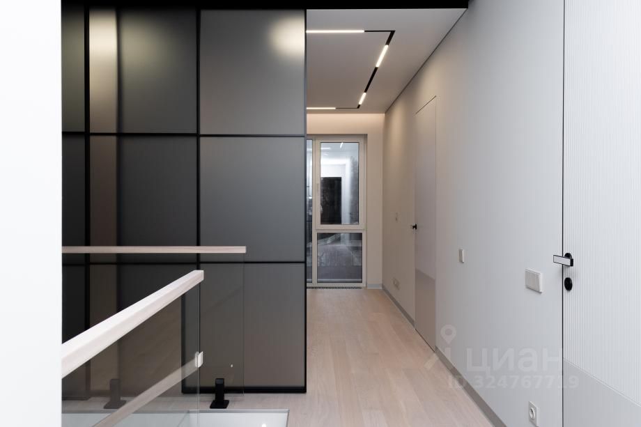 Интерьер: Отделка стен: итальянская плитка, высококачественные лакокрасочные покрытия, гипсовые и МДФпанели, шпонированные фасады. * Полы: техномассив со шпоном дуба (второй этаж и гостевая), итальянская плитка под дерево (первый этаж) * Потолки: * первый этаж — ГКЛ с идеальной окраской, * второй этаж — многоуровневые натяжные с теневым профилем, локальной подсветкой и трековой системой освещения. * Сантехника премиумкласса: Grohe, Boheme, Omoikiri, ванна Villeroy & Boch — эталон функциональности и дизайна. * Межкомнатные двери ''невидимки'' Волховец — лаконичность и элегантность. Мебель и оборудование: элитные бренды * Кухня: фасады МДФ Eterno Wood, техника ASKO (холодильник, микроволновка, духовой шкаф), посудомоечная машина SMEG, вытяжка Falmec. Столешница и стол из HPL Compact — стиль и практичность. * Котельная: МДФшкаф, столешница HPL Compact, техника Asko (стиральная и сушильная машины). * Гардероб: ЛДСП ''Ламарти'' с выдвижными ящиками скрытого монтажа. * Кабинет: панели и стол из МДФ Eterno Wood, пеналы с фасадами AGT Supra mat. * Санузел: столешница из искусственного камня с интегрированной мойкой, навесная тумба и шкафчики Egger Perfect Sense с полиуретановым кромлением.