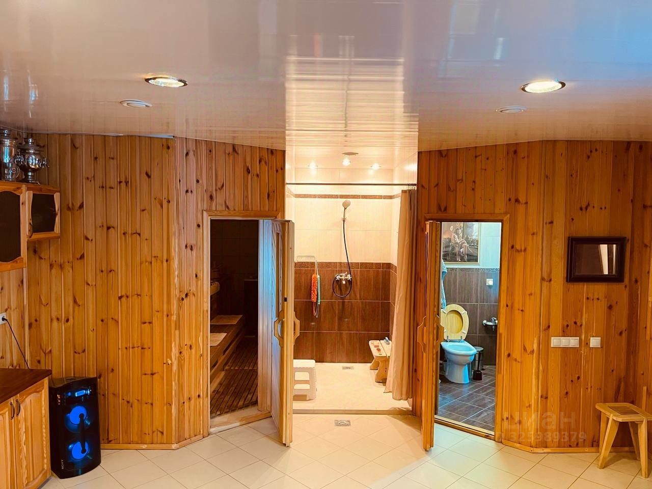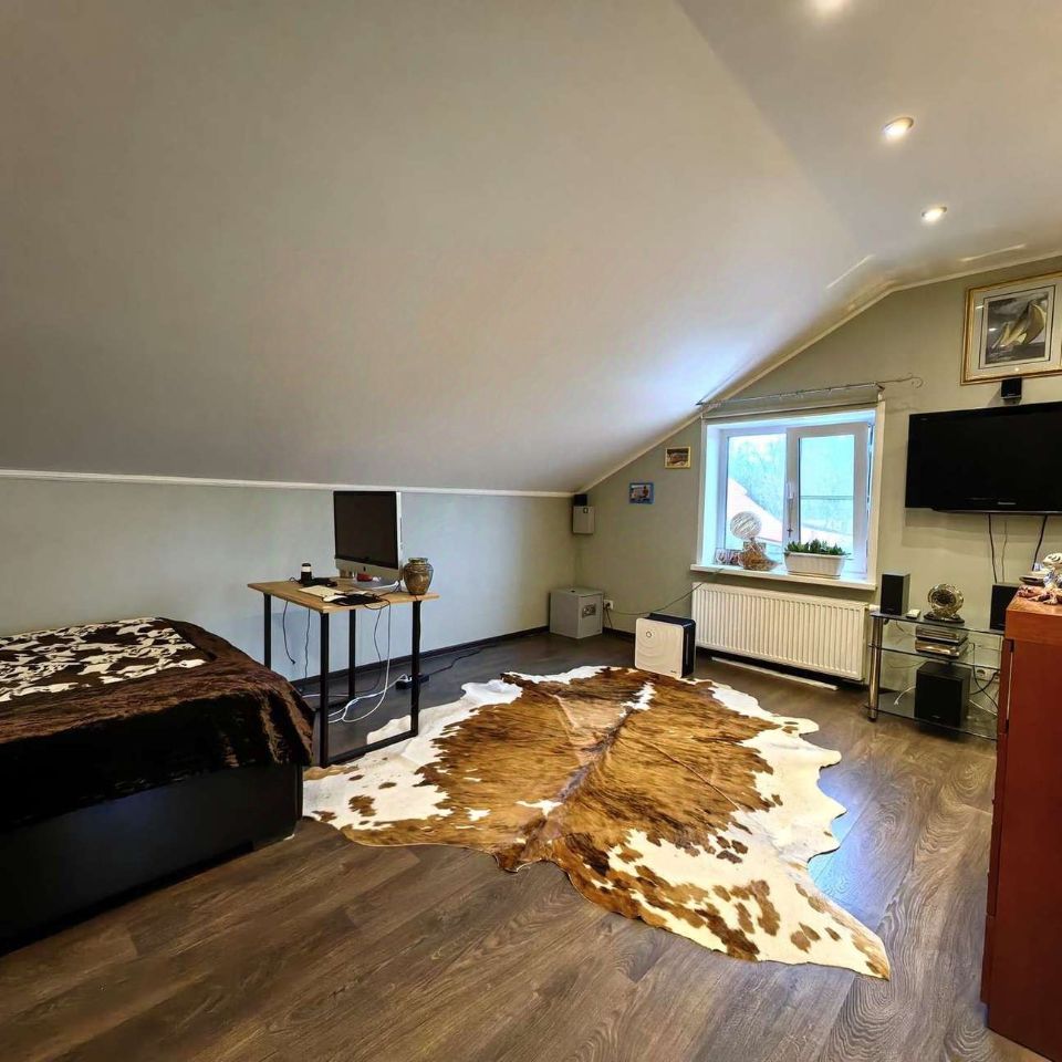 Гостевой дом: первый этаж- кухня-гостиная, сауна, раздельный душ и туалет, второй этаж- просторная комната, также имеется кондиционер, электрический камин.