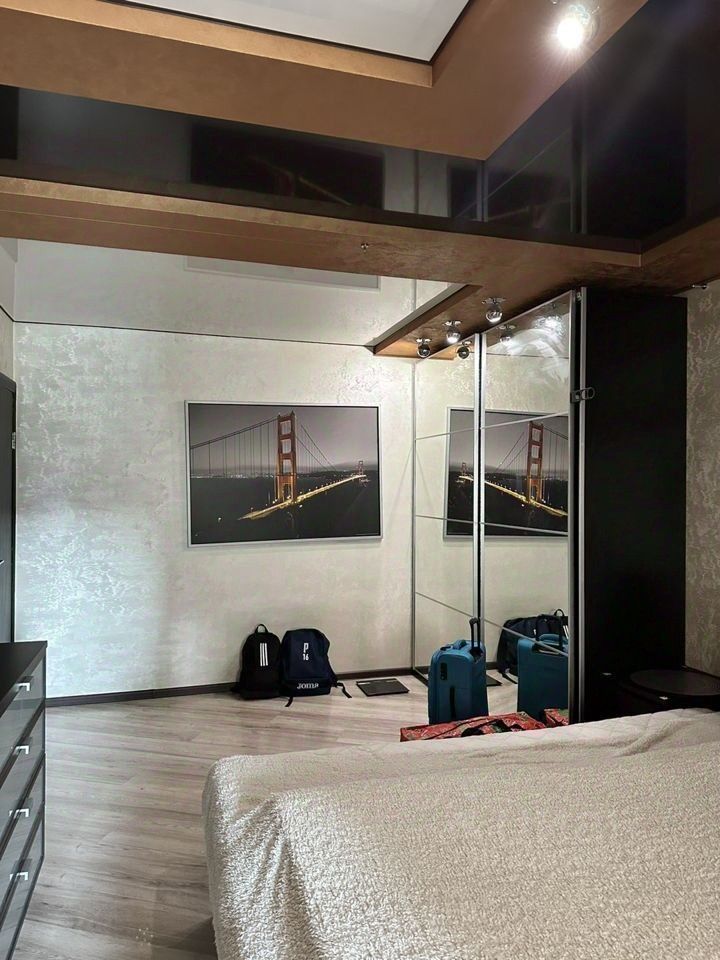 Сдается квартира на длительный срок .В спальной комнате есть кровать с встроенным ящиками для хранения белья, изголовье с полками, две прикроватные тумбы, шкаф-купе, два комода и тумба по телевизором. Из техники: кондиционер, телевизор. На лоджии - рабочий кабинет. На кухне из техники: кондиционер, холодильник, микроволновая печь. Есть розетки под телевизор над барной стойкой. В санузле - водонагреватель за дверцами, полки для бытовой химии В ванной комнате - стиральная машина, скрытое хранение бытовой химии в коробах. В коридоре - шкаф-купе, зеркало Обувница находится в общем тамбуре с соседями. Тамбур на две квартиры.