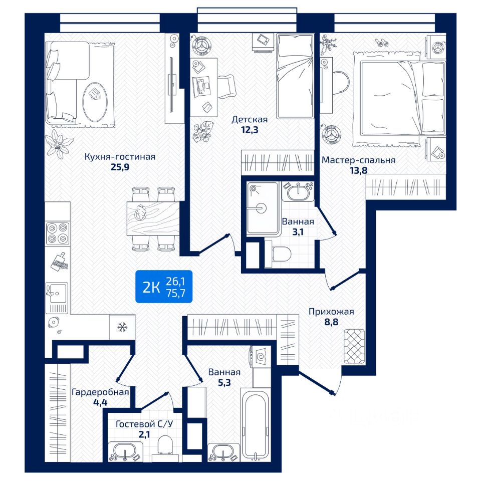 продам 2-к, Радиальная 8-я, 3112 414 800 ₽