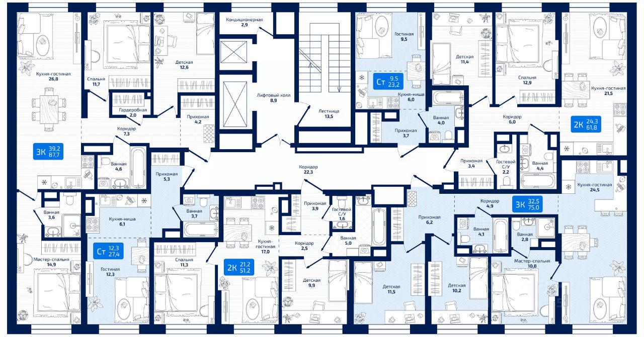 жилой квартал МАТРИЦА Первый проект комплексного развития территорий в г. Самара на 4,8 га Архитектура: Концептуальный стиль с навесными фасадными решениями из керамогранита, аквапанелей и кассет из алюминиевого композита Широкоформатное остекление Дизайнерская подсветка фасадов Социальный кластер: Новая школа на 300 мест Десткий сад на 155 мест Поликлинника на 100 посещений в сутки Инфраструктура: Собственный парк с плейхабами Закрытый двор без машин Двухуровневый подземный паркинг с доступом к квартире и электроазарядками Келлеры Уникальные планировочные решения: Квартиры с террасами и видом на Волгу Двухуровневые квартиры с видом на Волгу Квартиры с террасами на первых этажах во двор Кухни-гостинные, мастер-спальни с гардеробными Более 40 вариантов планировок