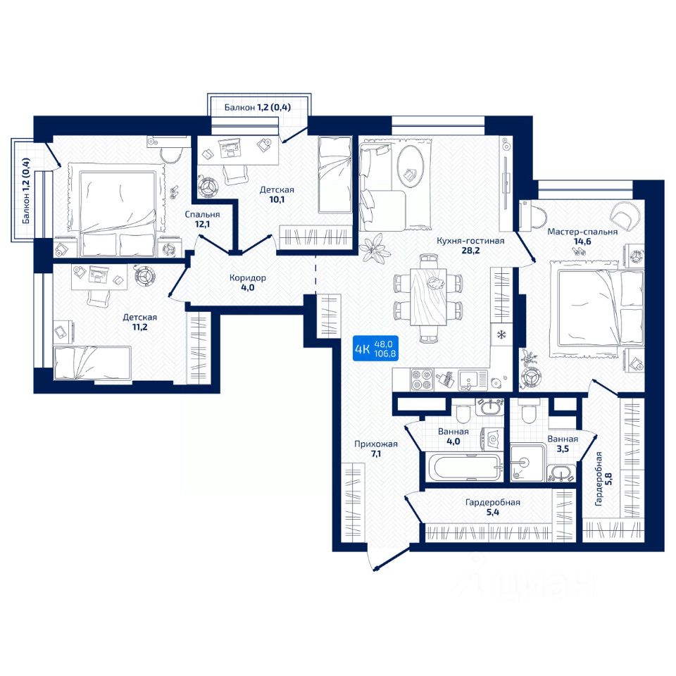 продам 4-к, Радиальная 8-я, 3118 369 600 ₽