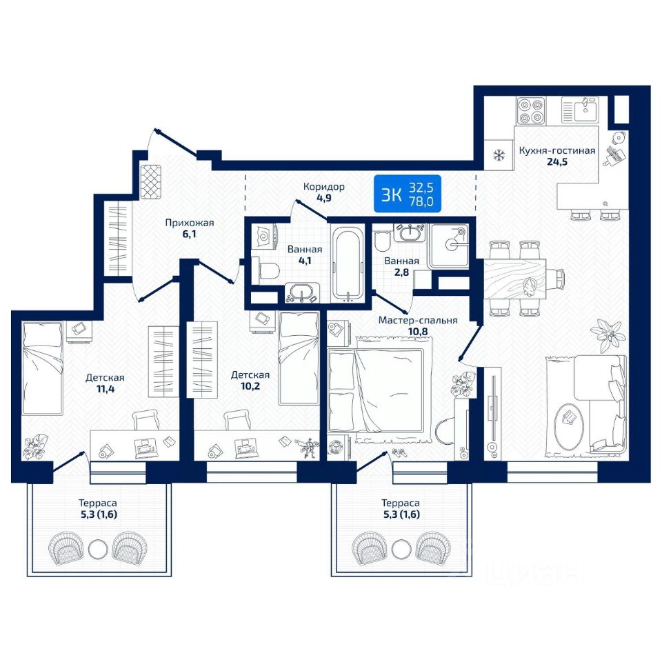 продам 3-к, Радиальная 8-я, 3113 104 000 ₽