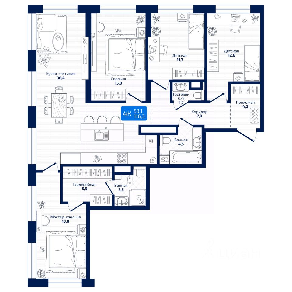 продам 4-к, Радиальная 8-я, 3121 515 500 ₽