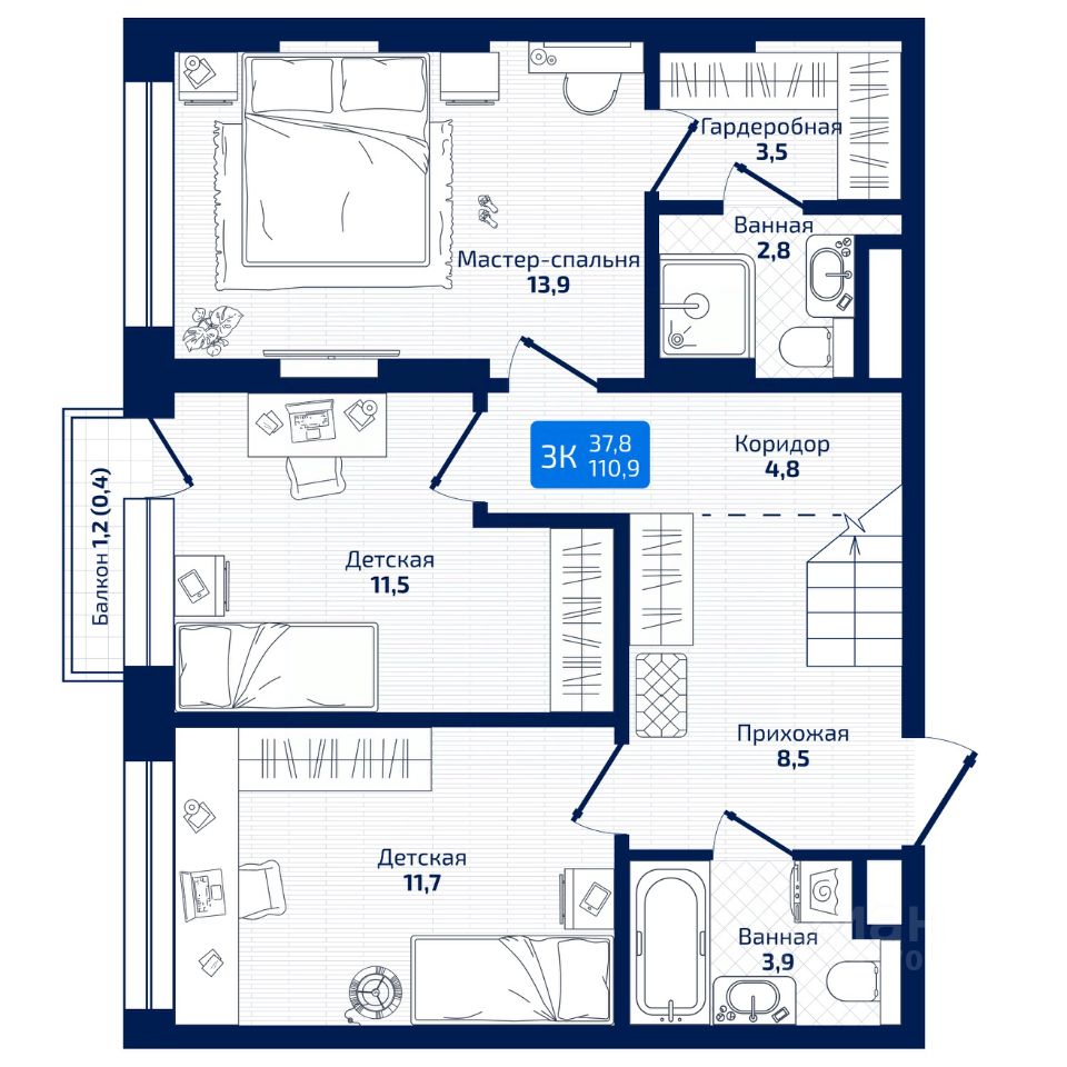 продам 3-к, Радиальная 8-я, 3123 247 000 ₽