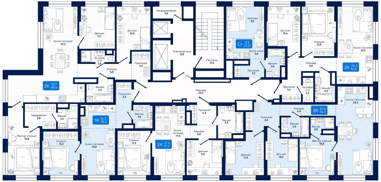 жилой квартал МАТРИЦА Первый проект комплексного развития территорий в г. Самара на 4,8 га Архитектура: Концептуальный стиль с навесными фасадными решениями из керамогранита, аквапанелей и кассет из алюминиевого композита Широкоформатное остекление Дизайнерская подсветка фасадов Социальный кластер: Новая школа на 300 мест Десткий сад на 155 мест Поликлинника на 100 посещений в сутки Инфраструктура: Собственный парк с плейхабами Закрытый двор без машин Двухуровневый подземный паркинг с доступом к квартире и электроазарядками Келлеры Уникальные планировочные решения: Квартиры с террасами и видом на Волгу Двухуровневые квартиры с видом на Волгу Квартиры с террасами на первых этажах во двор Кухни-гостинные, мастер-спальни с гардеробными Более 40 вариантов планировок