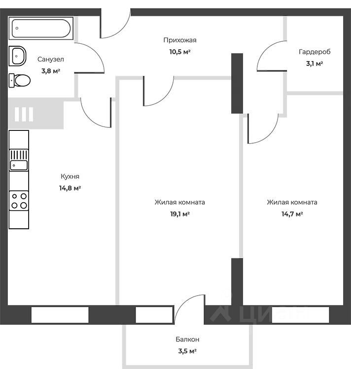 Удачная планировка с большой кухней, установлена новая качественная входная дверь, есть возможность переделать в евротрешку, высокие потолки 2,8, высокий этаж и окна во двор, не будет шума от дороги, дом заселен, есть подземный паркинг, развитая инфраструктура.