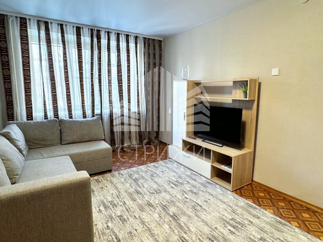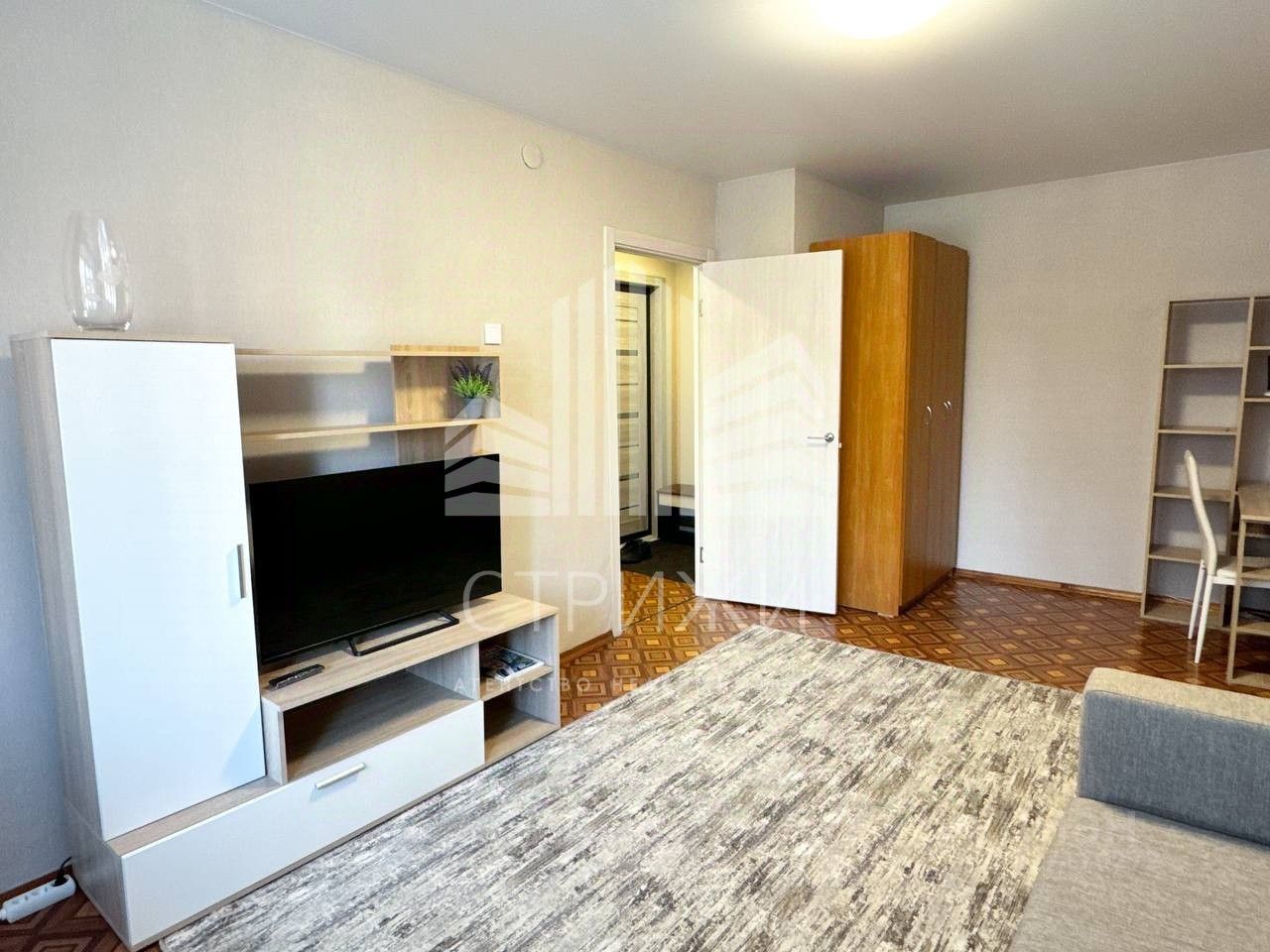 О КВАРТИРЕ Квартира полноценная однокомнатная, с большой кухней 8 м2, кухня правильной квадратной формы, здесь комфортно расположиться и кухонный гарнитур и обеденная зона и диванчик при желании. Комната тоже большая 19м2, Планировка позволяет разедлить на зону гостиной и рабочую зону как у нас, или оборудовать спальное место, как тоже многие делают. Пространство позволяет, приходите смотреть — все покажу и поясню. Ванная комната, вся в плитке. Есть водонагреватель на период отключения горячей воды. Все что на фото — мы оставляем, диван, модульная гостиная, шкаф, стол, стиральная машина, микровоновка, телевизор.