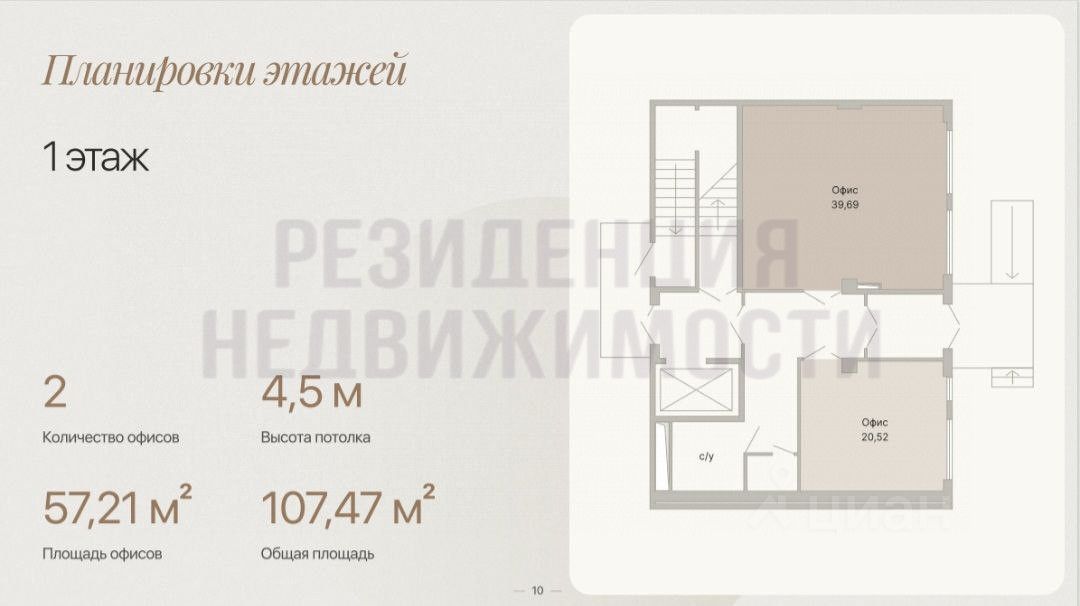 Высота потолков:Первый этаж: 4,5 метраОстальные этажи: 3 метра