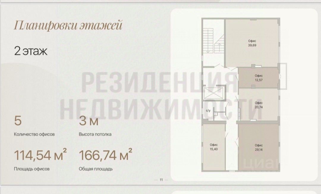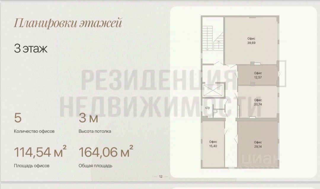 Тип помещения: Несколько офисов различного размера (от 15,4 до 39,69 м²).Инфраструктура: Наличие лифтов и парковочных мест.