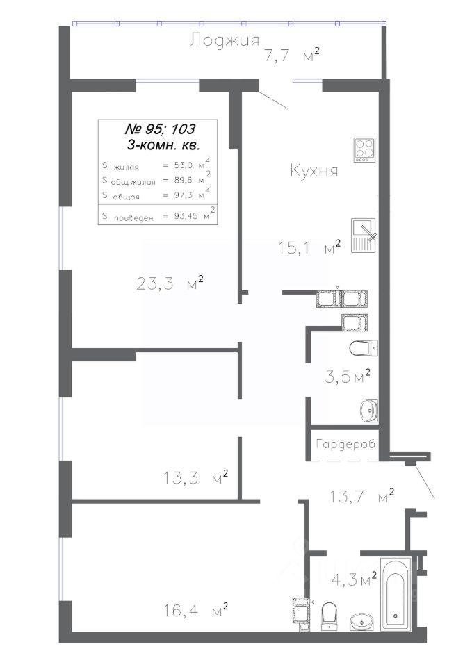 Общая площадь93,45 м2