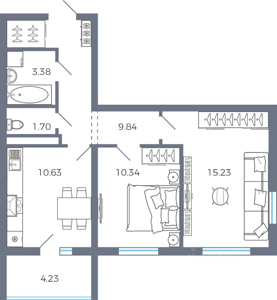 Общая площадь53,24 м2