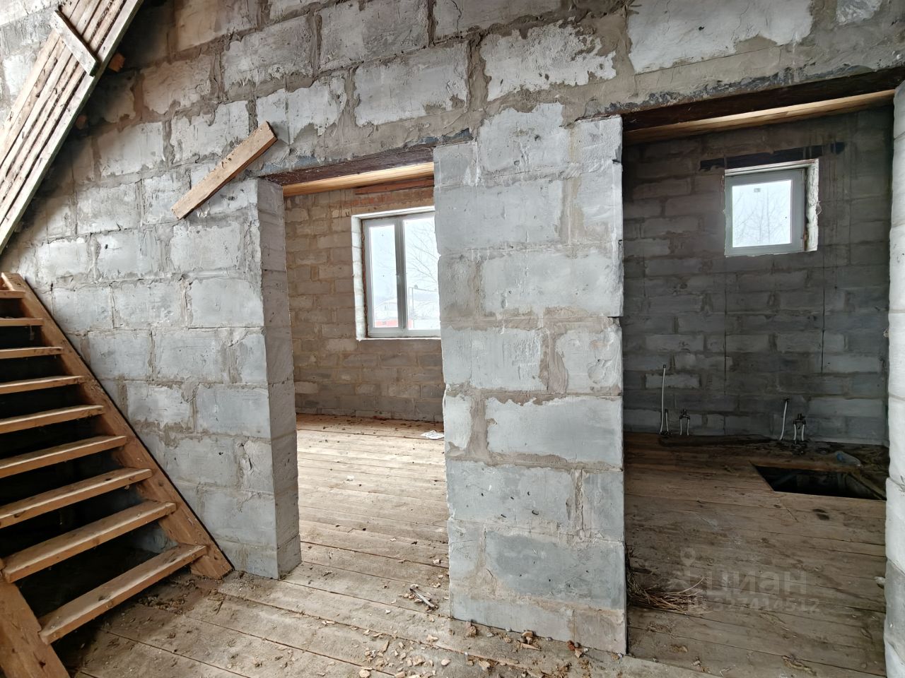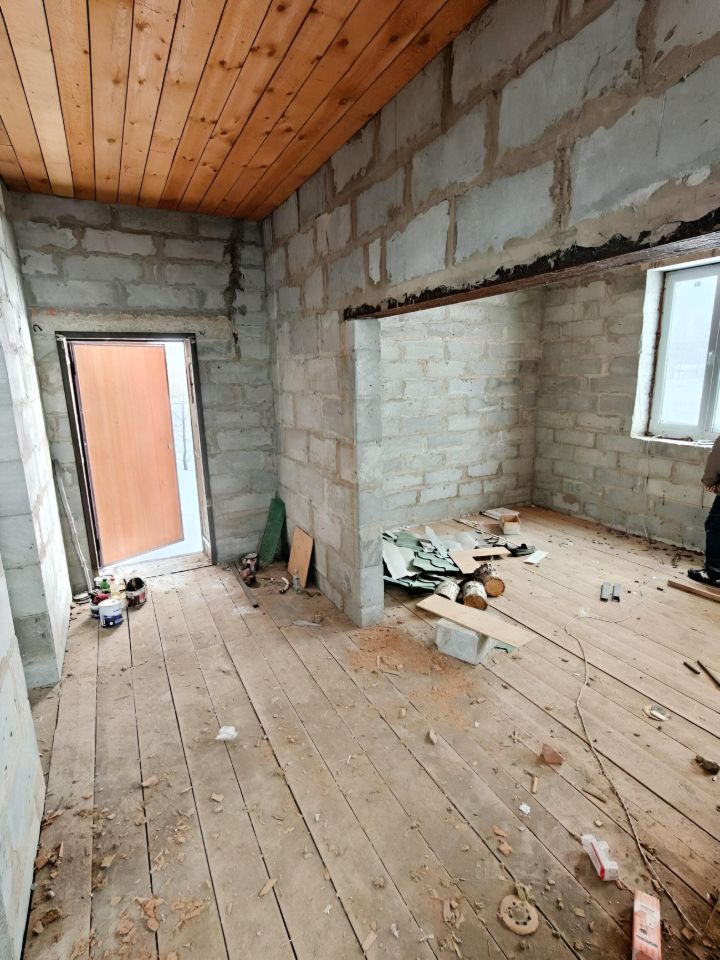 Требует доведения до жилого состояния, на участке скважина, газ доведен до границы участка, электричество в доме, выгребная яма на участке. Участок 20 соток, каркас забора по периметру, на участке только несколько сосен и деревья.